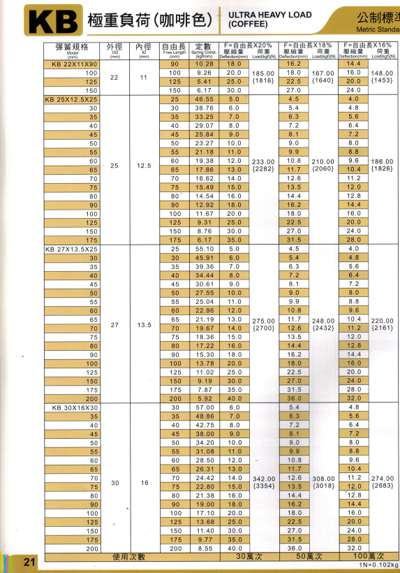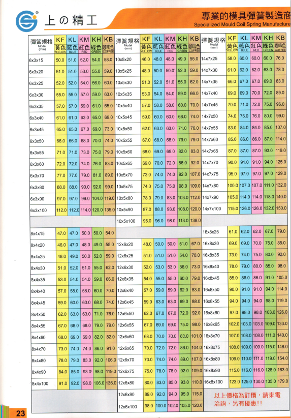 上精工模具彈簧規(guī)格書(產(chǎn)品大全)